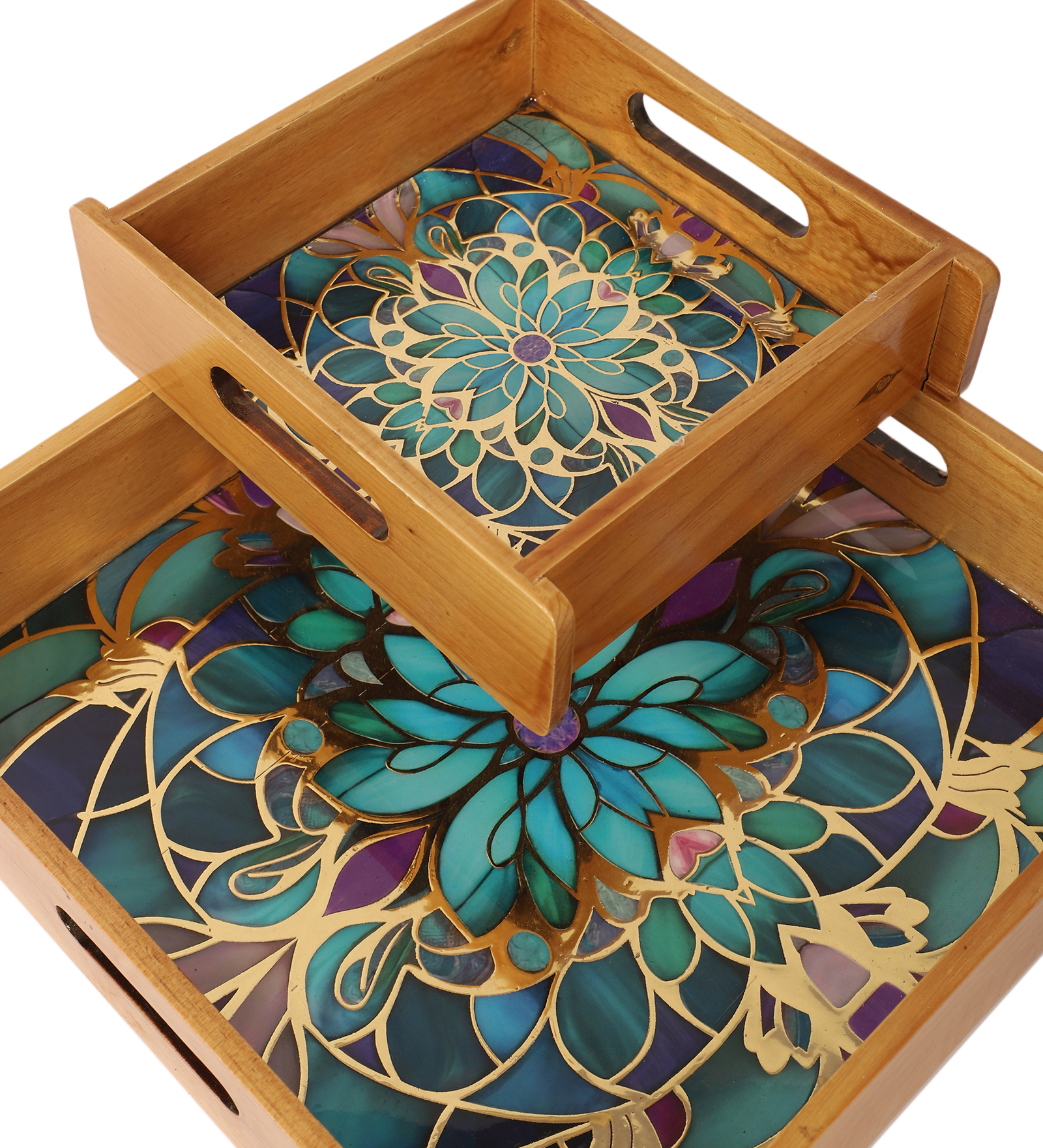 Mystic Mandala Wooden Tray Set – Set of 2