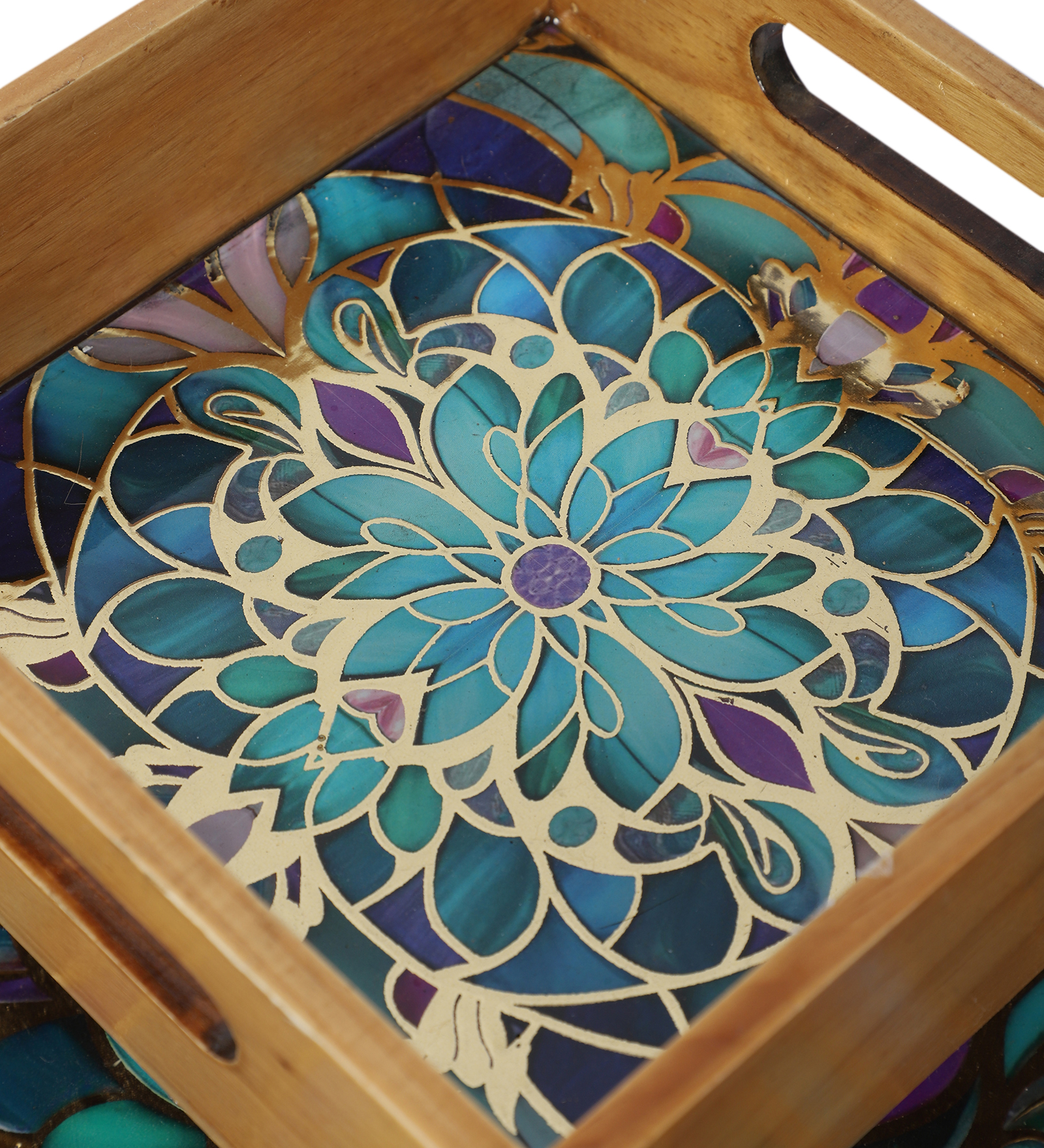 The Shree Jee elegance and charm to your serving experience with this handcrafted square wooden tray. Made from premium quality wood, each tray features a stunning resin-coated base with intricate printed artwork, ranging from traditional Indian motifs to contemporary patterns. The smooth finish and sturdy handles make it perfect for both daily use and special occasions.