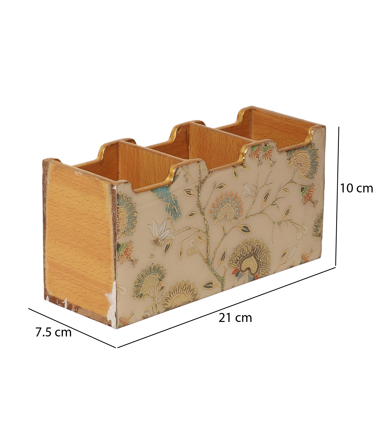 The Shree Jee elegance to your kitchen or dining space with this beautifully crafted wooden cutlery box. Made from premium quality wood, it features a vibrant resin print inspired by traditional Indian motifs, showcasing intricate artwork of traditional patterns, and a palace backdrop. Designed with multiple compartments, it’s perfect for organizing forks, spoons, knives, and other cutlery essentials. Both functional and decorative, this cutlery holder brings a regal charm to your countertop or dining table.