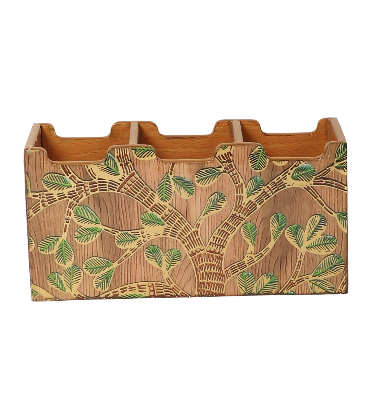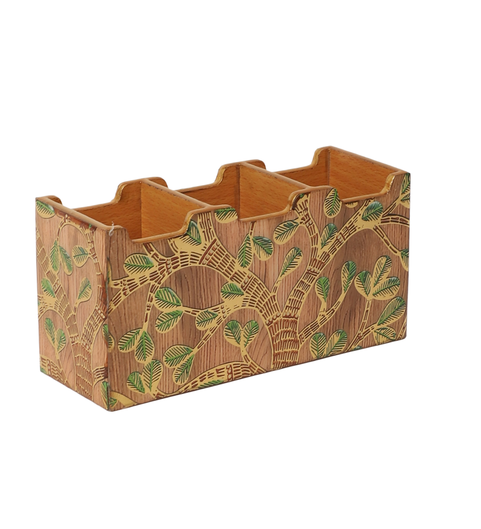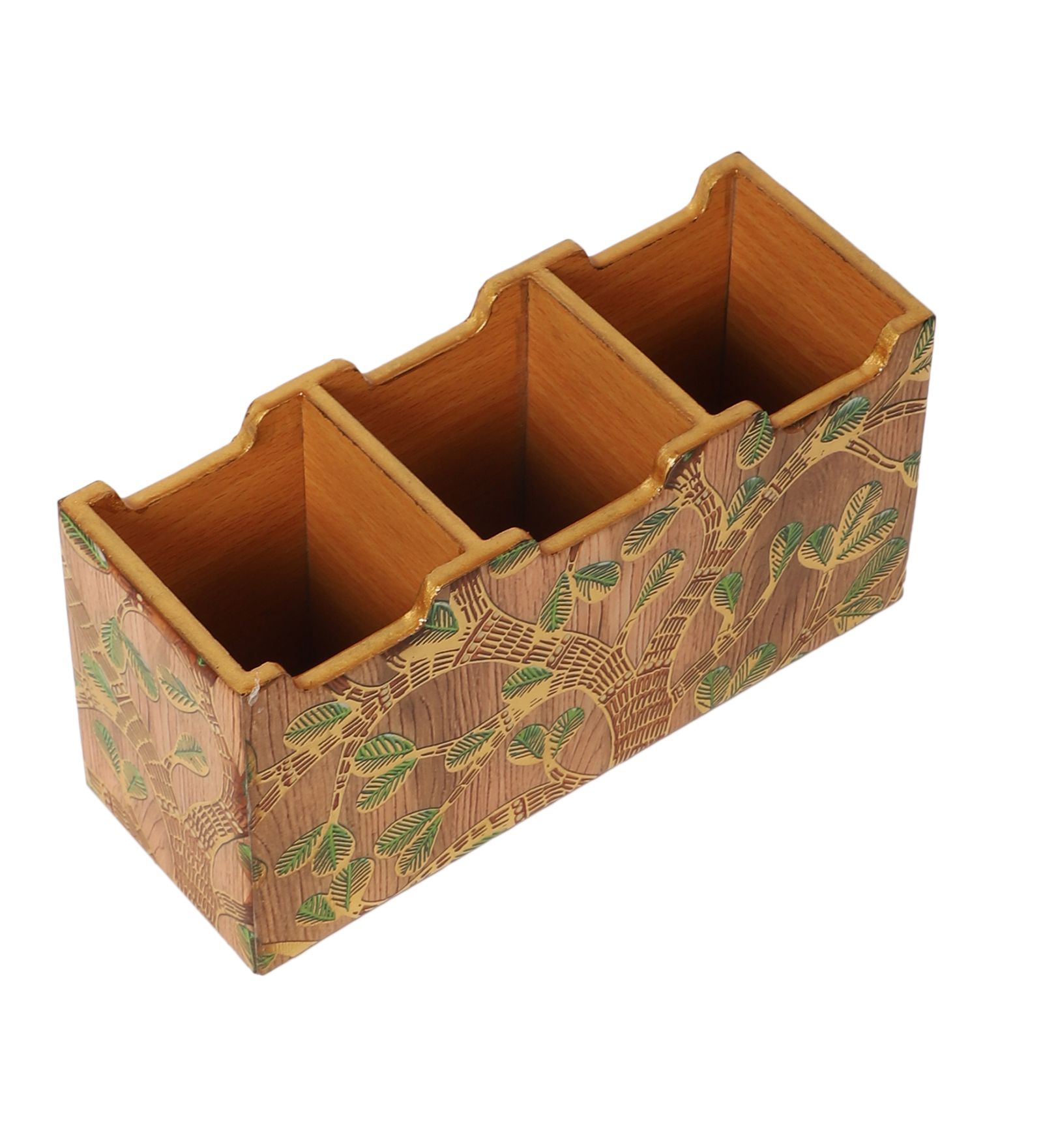 The Shree Jee elegance to your kitchen or dining space with this beautifully crafted wooden cutlery box. Made from premium quality wood, it features a vibrant resin print inspired by traditional Indian motifs, showcasing intricate artwork of traditional patterns, and a palace backdrop. Designed with multiple compartments, it’s perfect for organizing forks, spoons, knives, and other cutlery essentials. Both functional and decorative, this cutlery holder brings a regal charm to your countertop or dining table.