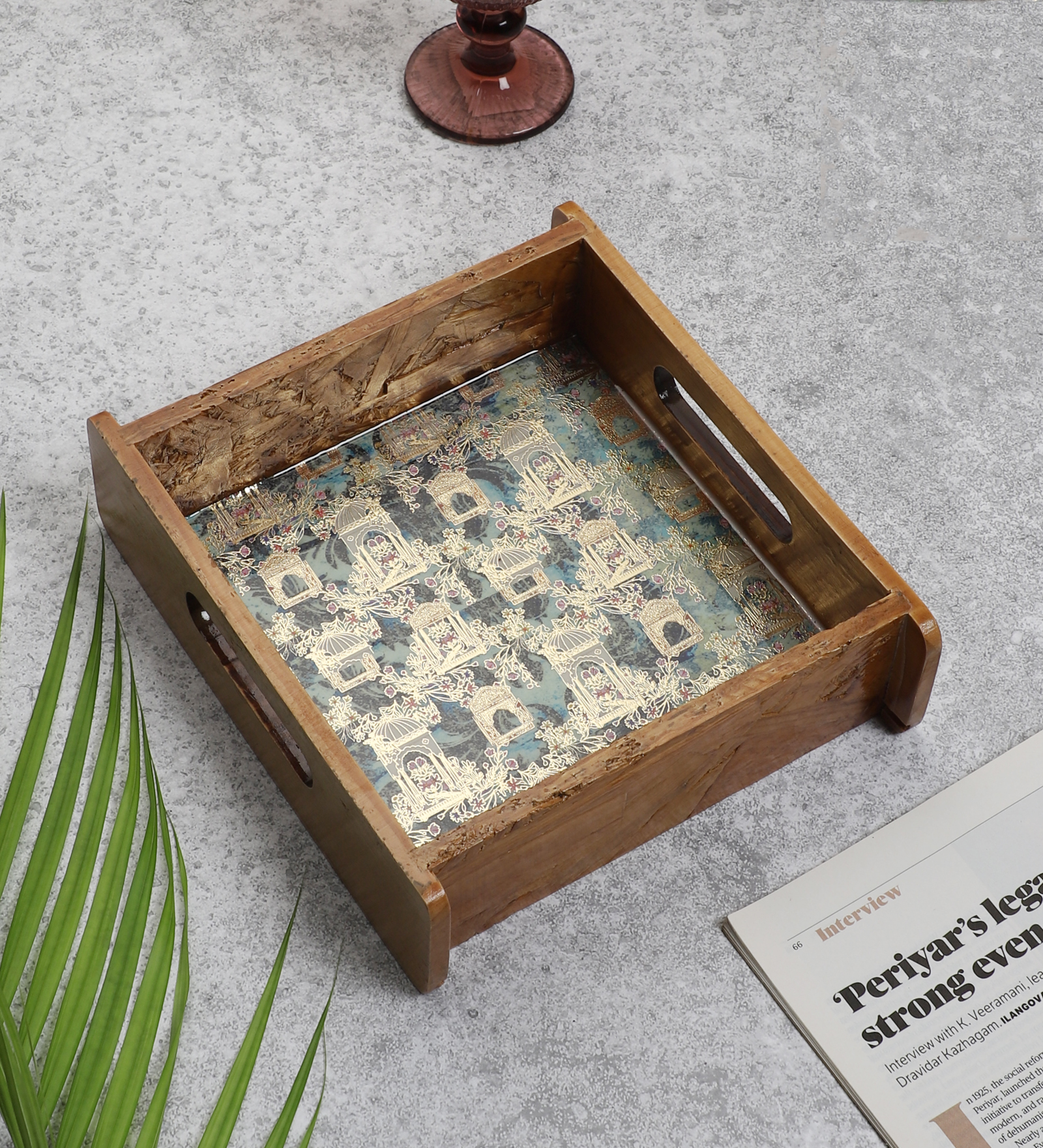 Whether you’re serving beverages, snacks, or simply using it as a decorative piece, this tray blends utility with aesthetic appeal.