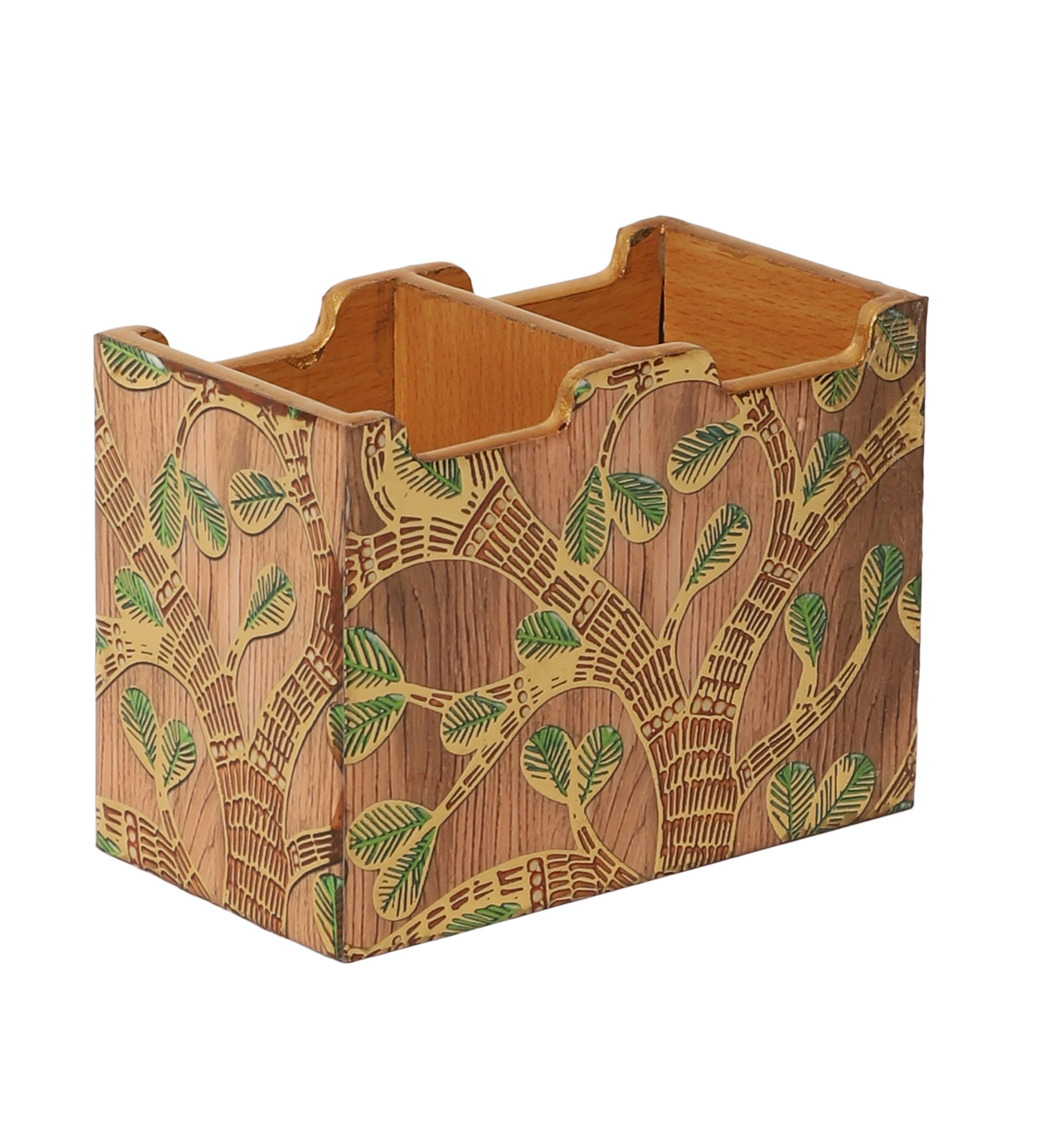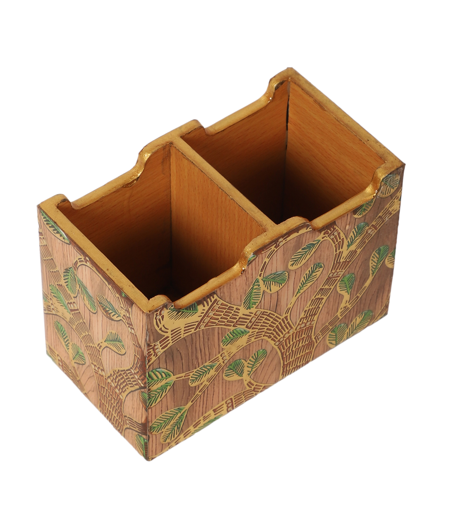 The Shree Jee elegance to your kitchen or dining space with this beautifully crafted wooden cutlery box. Made from premium quality wood, it features a vibrant resin print inspired by traditional Indian motifs, showcasing intricate artwork of traditional patterns, and a palace backdrop. Designed with multiple compartments, it’s perfect for organizing forks, spoons, knives, and other cutlery essentials. Both functional and decorative, this cutlery holder brings a regal charm to your countertop or dining table.