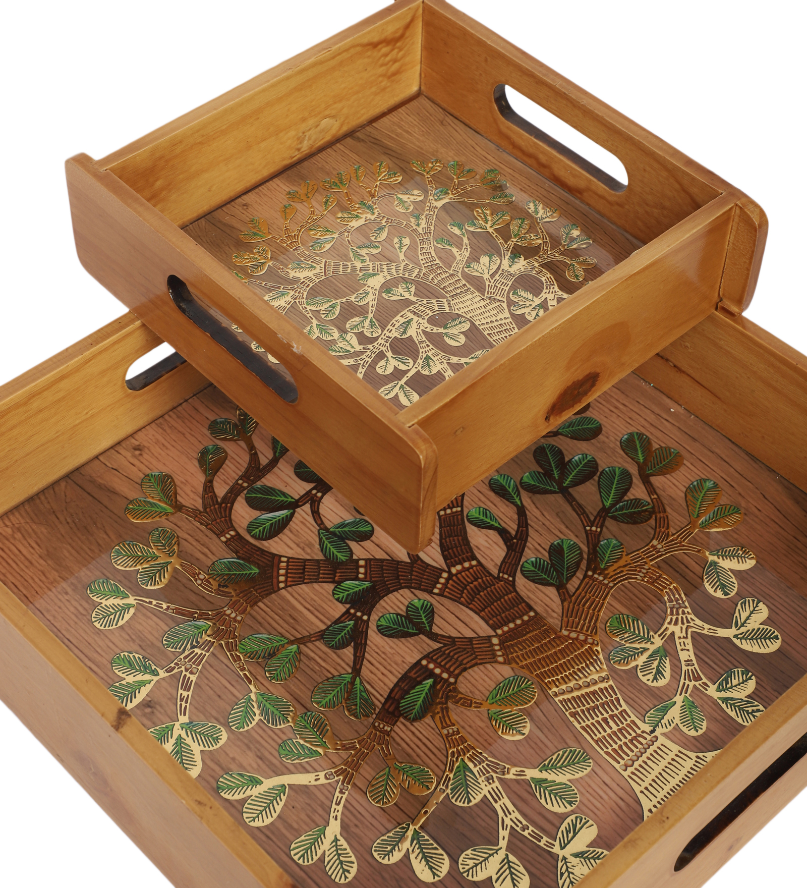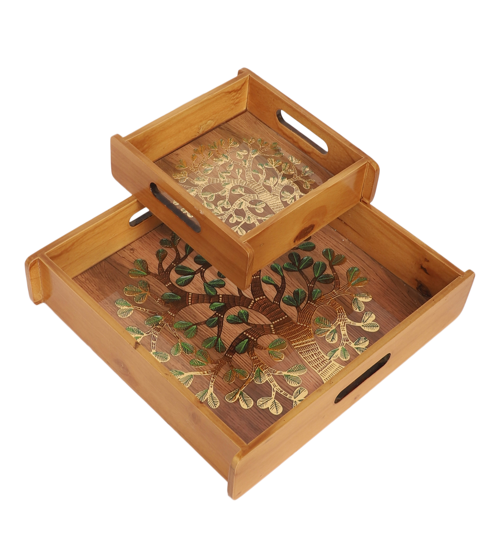 Tree of Life Wooden Tray Set – Set of 2